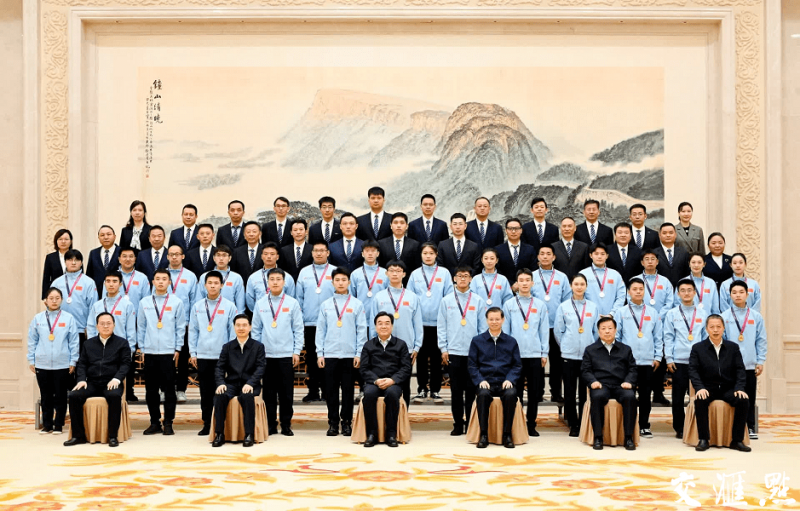 (二排左三、左八为我校金牌选手周秧锋、田闰;五排左五、五排右三为教练代表仇成威、张悠荣 上图来自江苏学习平台)