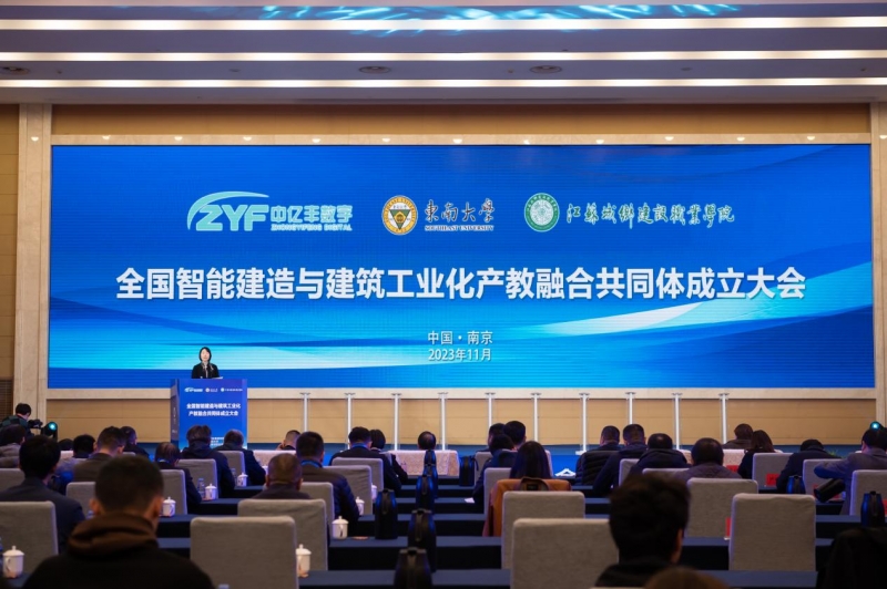 11月15日,全国智能建造与建筑工业化产教融合共同体(以下简称“共同体”)成立大会在南京顺利召开,该共同体由中亿丰数字科技集团有限公司、东南大学、江苏城乡建设职业学院三家单位牵头,来自全国各地的59家共同体成员单位代表参加会议。会议由江苏城乡建设职业学院党委副书记、校长张蔚主持。