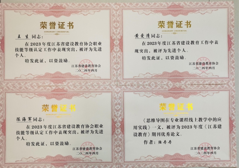 会议由成宁秘书长代表理事会作了协会2023年工作报告,省建设教育协会副理事长高峰、沈士德、吴光林宣读了理事会相关决议与表彰文件,并分批上台接受表彰。我校分别荣获2023年度优秀会员单位、乡村振兴学院黄爱清被评为先进个人、土木工程学院王生、陈海军被评为职业技能等级认定工作先进个人、公用事业学院陆丹丹《思维导图在专业课程线上教学中的应用实践》一文被评为优秀论文。随后,章小刚主任代表省建设职业教育行业指导委员会对大会的召开表示热烈祝贺。他希望建设教育协会作为行指委重要成员单位,要深入践行“以学习者为中心”的理念,坚持创新驱动,坚持融合发展,努力成为优质教学资源的提供者、先进教学平台的建设者、行业人才培养的推动者,为全省住房城乡建设领域人才培养作出新的更大贡献,以更丰富的工作成果向中华人民共和国成立75周年献礼。