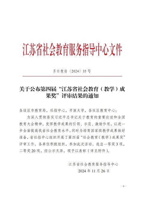 我校两项成果获第四届江苏省社会教育教学成果二等奖