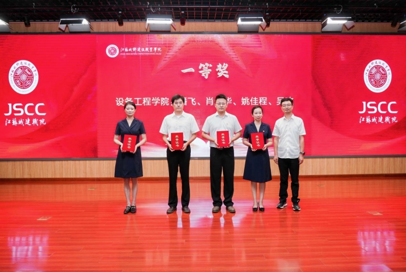 校党委委员、副校长袁建刚,副校长袁乐分别为2025年江苏省职业院校教学能力比赛中获奖的教师颁奖。