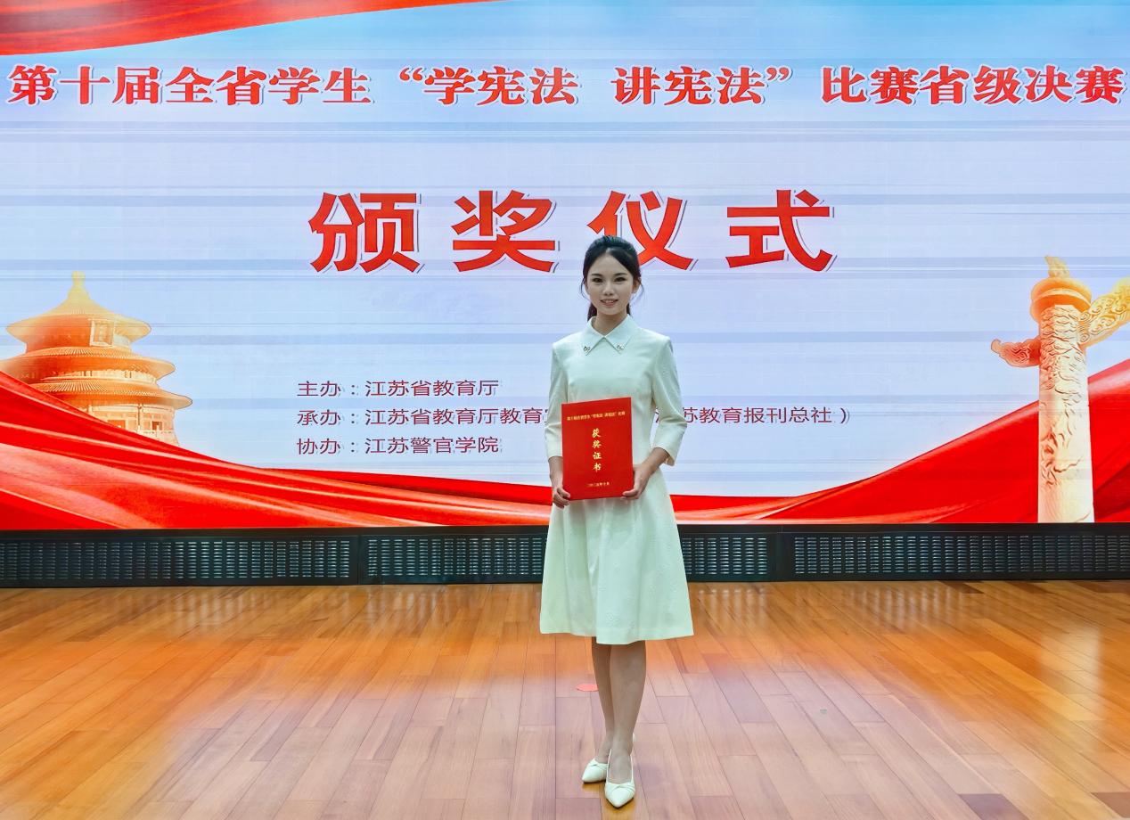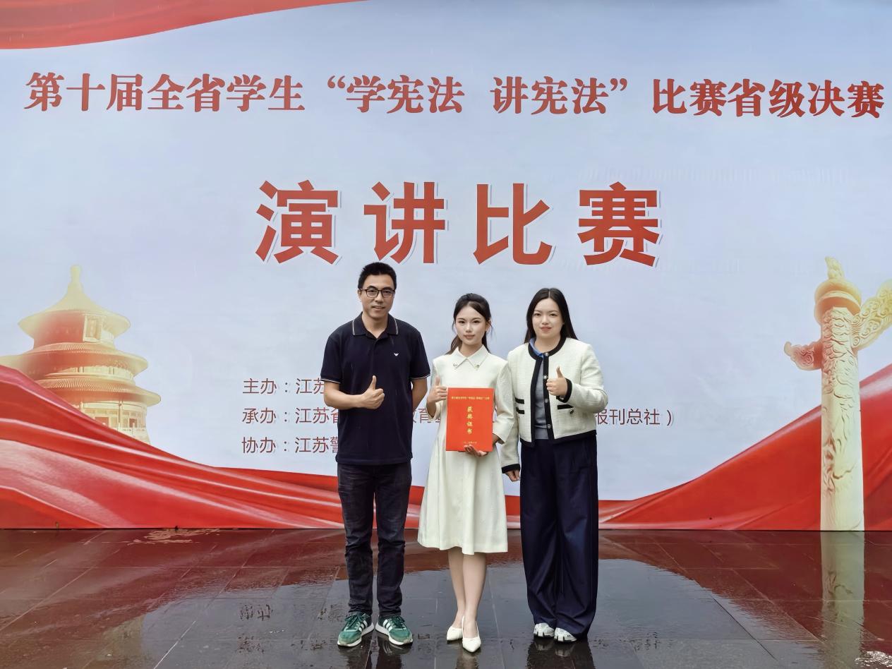 10月18日至19日,由省教育厅主办、省教育厅教育宣传中心(江苏教育报刊总社)承办、江苏警官学院协办的第十届全省学生“学宪法 讲宪法”比赛决赛在南京圆满落幕。经过校级选拔、省级初赛的多轮激烈角逐,我校管理工程学院学生、校广播台台长黎越好凭借扎实的宪法知识储备与出色的演讲表现,从全省高校(含本科、高职)选拔出的20名决赛选手中脱颖而出,荣获高校组二等奖,指导老师王艺琳获“优秀指导教师奖”。