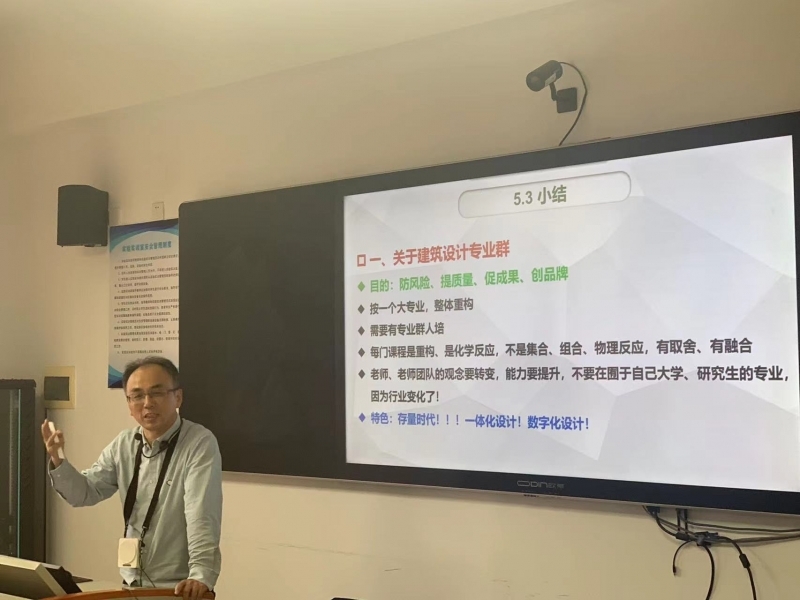 专业教学资源库有明确的期限,课程建设进度最后,建筑设计教研室蒋吉凯主任介绍了课程建设的进度要求。蒋吉凯主任分别介绍了专业教学资源库课程建设的时间节点、建设机制、质量要求等方面,希望全体教师共同努力,按期完成专业教学资源库建设的各项重点任务。