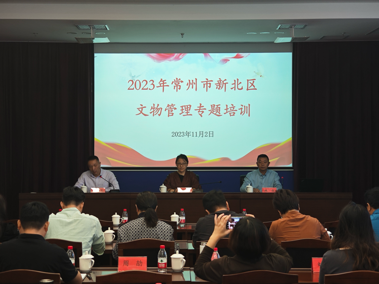11月2日,由常州市国家高新技术产业开发区(新北区)教育局(文化体育和旅游局)主办,常州市文物保护发展研究院承办的2023年常州市文物管理专题培训圆满结束。新北区教育局副局长、文化体育旅游局局长杨杰作致辞和开班讲话,江苏城乡建设职业学院建筑艺术学院副院长林改出席并致辞。来自新北区各镇、街道行政审批局文体旅条线分管领导及具体工作人员、文物安全管理员、市级以上文保单位负责人约40人参加了本次培训。