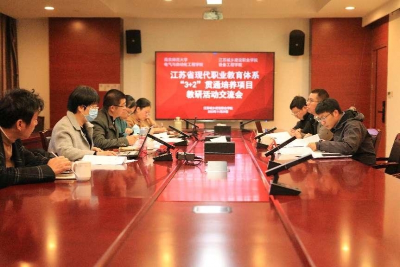 为持续提升南京师范大学电气及自动化学院与本校建筑电气工程技术专业“3+2”专本贯通培养项目的人才培养质量,11月29日,南京师范大学电气及自动化学院领导及专业教师受本校设备工程学院邀请,来校参加江苏省现代职业教育体系“3+2”贯通培养项目推进交流会。南京师范大学电气及自动化学院书记王龙、院长杨继全、副院长马刚、副书记王田田、电气工程系主任唐小波等、江苏城乡建设职业学院党委副书记王伟、教务处副处长(主持工作)朱平、设备工程学院党政班子以及电气教研室全体教师参加了本次会议,会议由设备工程学院副院长张少瑜主持。