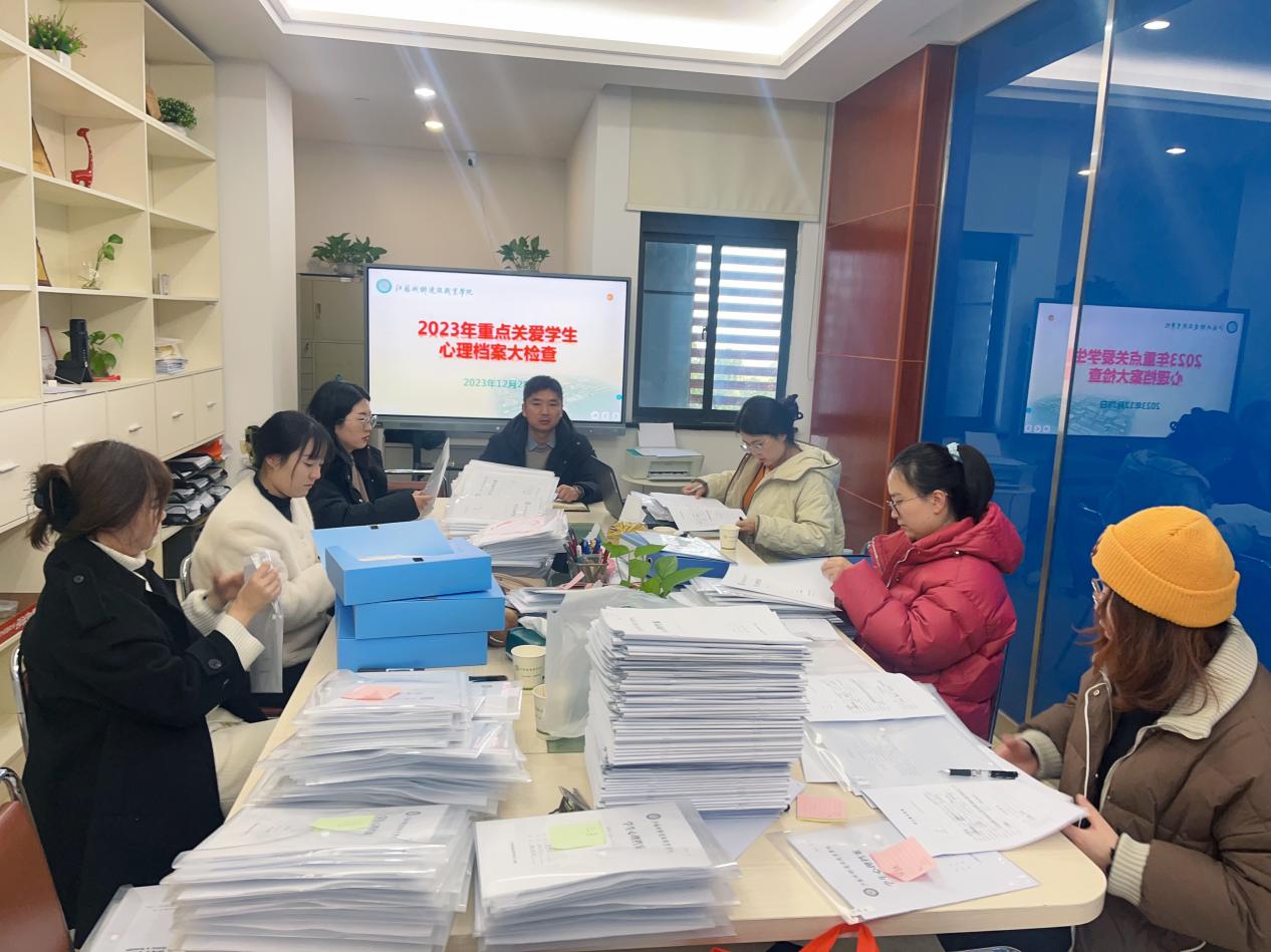 为进一步提高我校学生心理健康教育工作的规范性和有效性,切实加强重点关爱学生心理档案的科学管理,找准建档工作中薄弱环节,明确后续改进方向,12月28日学工处心理健康教育中心组织开展重点关爱学生心理档案建设情况专项检查。学工处副处长曹雪丰、心理中心专职心理教师、各二级学院心理辅导员参加检查。