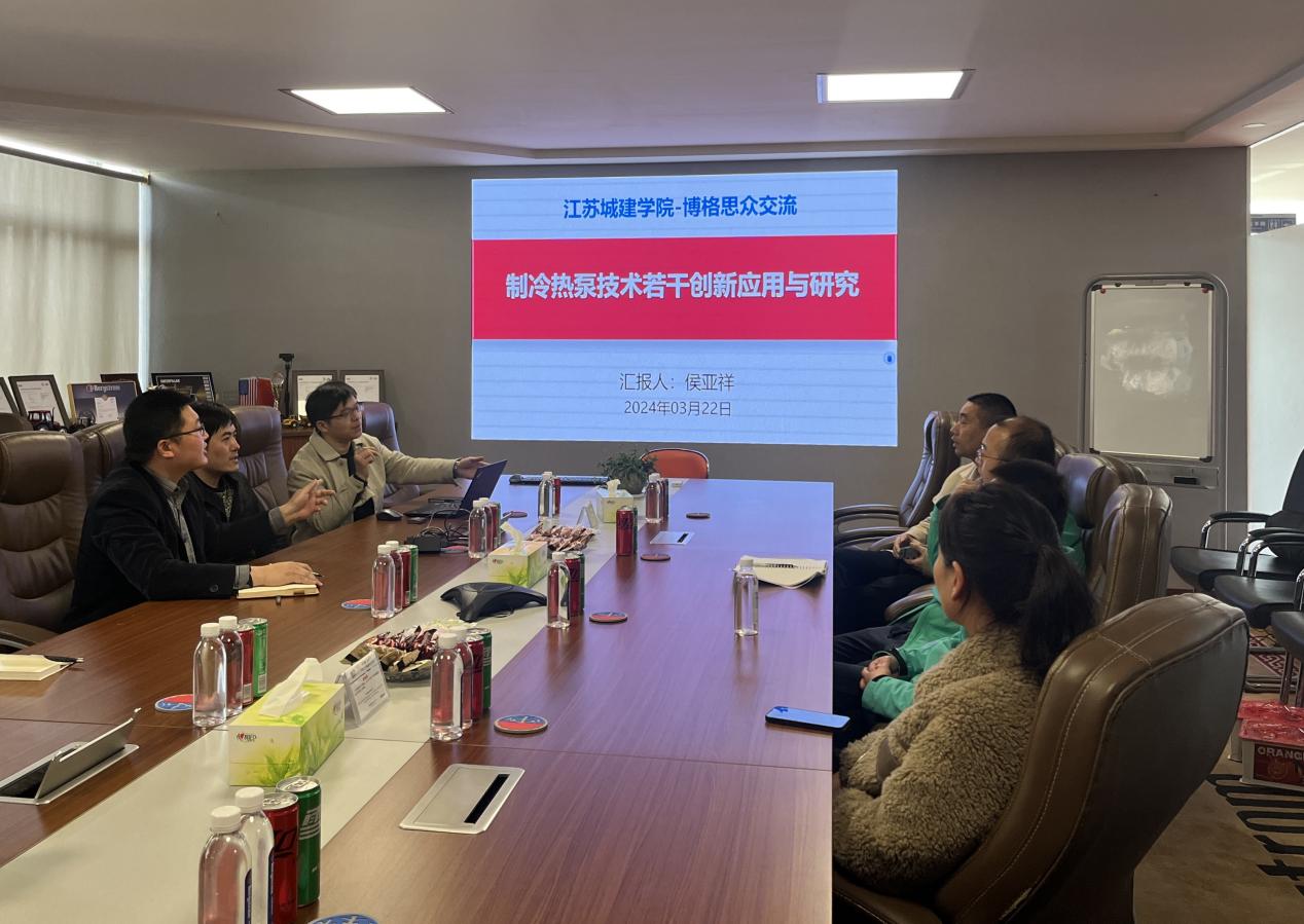 首先,陈亚平一行与博格思众的工程师们进行了座谈交流。两位博士分别就自己的研究领域做了相关介绍:侯亚祥讲解了制冷热泵技术的相关创新应用与研究;肖光华介绍了图像解读的原理、技术优势和应用场景。介绍完毕后,双方探讨了创新技术产业化以及现阶段存在的问题和挑战。座谈会的最后,校企双方围绕人才培养、实习实践、就业指导、校园招聘等方面进行了深入交流。李更祥提到,公司正在布局全球售后网络,希望能和设备工程学院强化合作,培养专业的海外售后技术技能型人才。