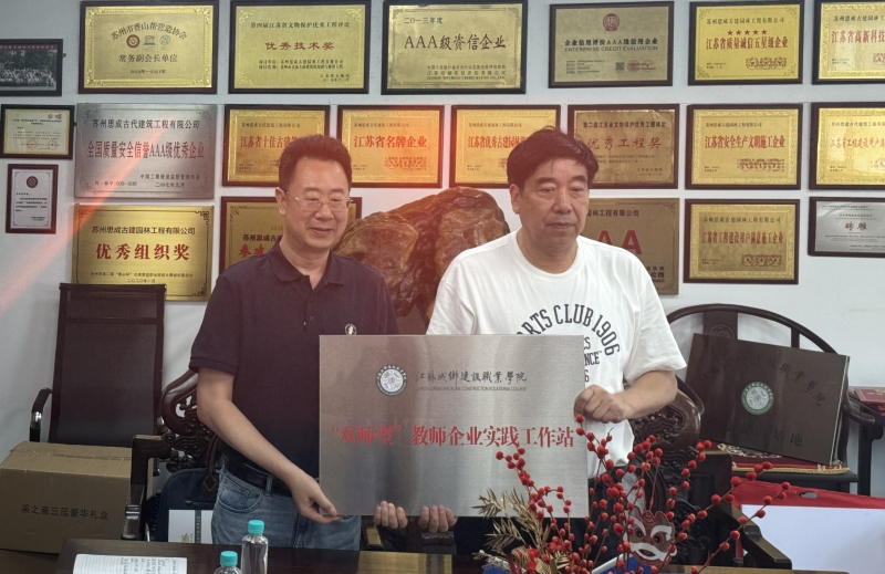 6月18日,我校建筑艺术学院与苏州思成古建园林工程有限公司在公司总部成功举行了深度校企合作签约仪式。此次合作标志着双方在古建筑文化传承、保护、修复及人才培养等领域将展开更加紧密的合作。副校长袁乐、建筑艺术学院党总支书记袁平、古建教研室主任史波及古建专业教师肖炳科、杨旭,与思成古建公司董事长朱兴男、总工程师陆革民、公司相关负责人贺启明、张明出席了签约仪式。