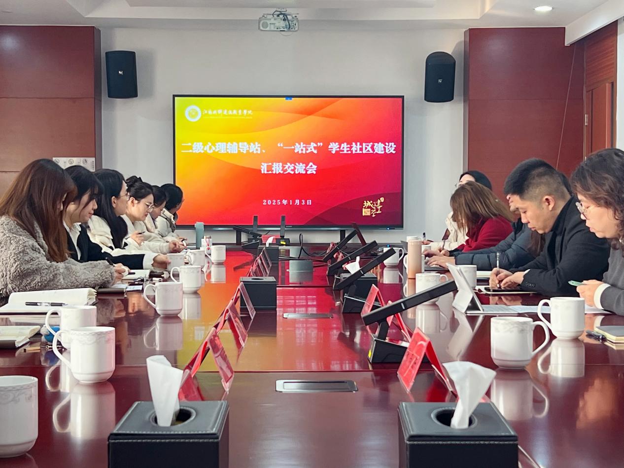 为提升我校心理健康教育品质与成效,激活“一心五站”机制,落实教育部“一站式”学生社区建设要求,促进各二级学院间工作经验交流,2025年1月3日,学生工作处组织召开2024年二级心理辅导站与“一站式”学生社区建设现场交流汇报会。学生工作处处长刘波、副处长祝琳及各二级学院党总支副书记、辅导员等23人参加会议,会议由祝琳主持。