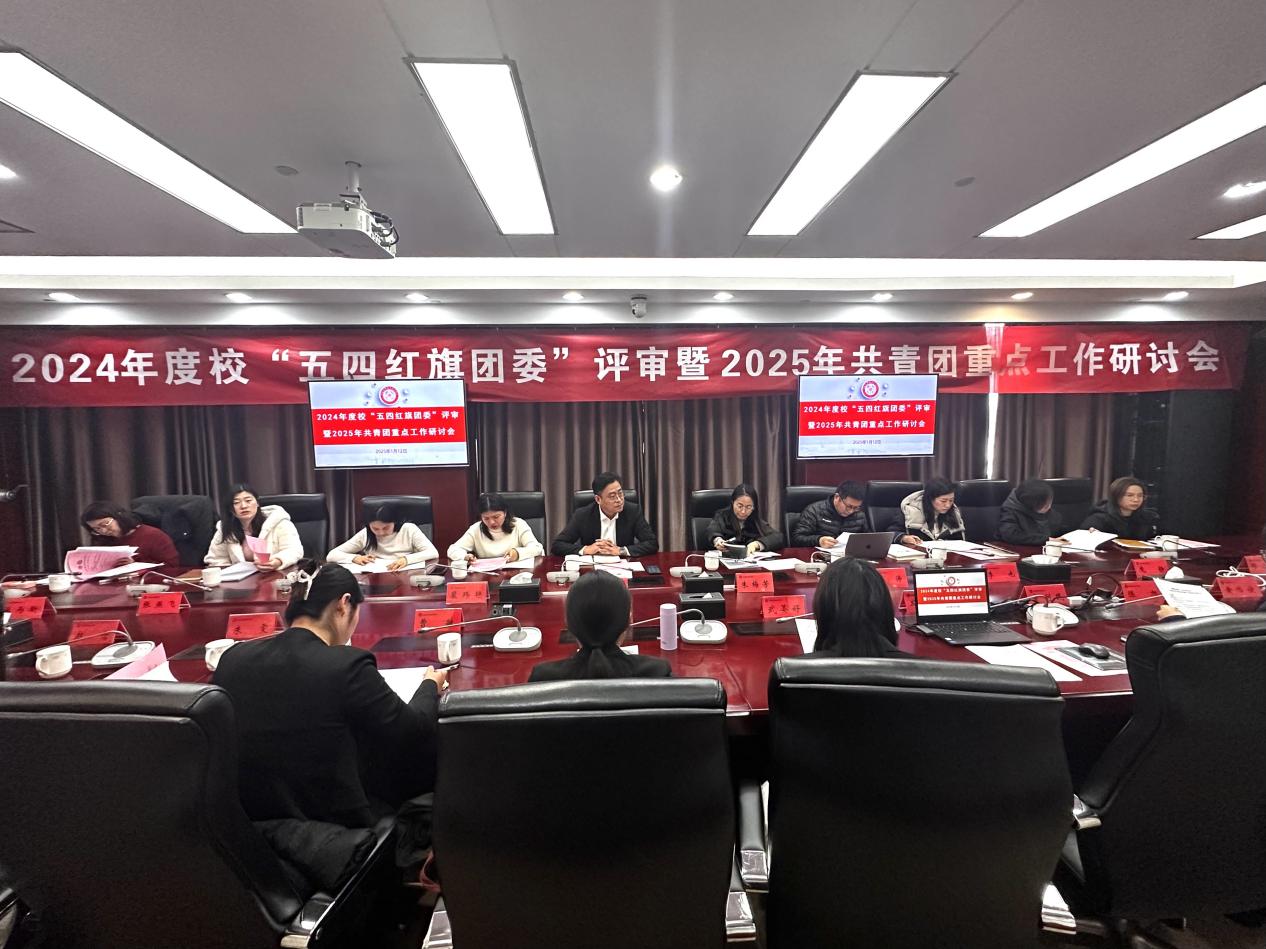 为深入学习贯彻党的二十届三中全会精神,全面落实从严治团和深化学校共青团改革的工作要求,推动学校共青团工作提质增效,2025年1月12日,我校召开2024年度校“五四红旗团委”评审会暨2025年共青团重点工作部署会。校党委委员、组织统战部部长徐祖平,党政办公室主任朱梅芳等人担任本次评审会评委,各二级学院团委书记、学生会指导教师参加会议。会议由校团委副书记周文斌主持。