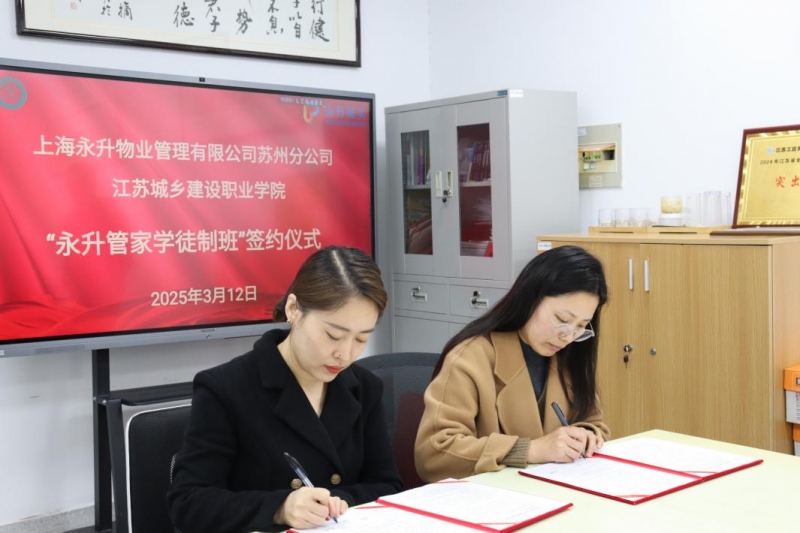 在积极响应国家保就业政策的大背景下,为切实加强校企之间的深度战略合作,精准对接企业需求,服务地方经济发展,3月12日,我校管理工程学院与上海永升物业管理有限公司苏州分公司达成深度合作,面向房地产经营与管理校级高水平专业群,跨专业组建“永升服务管家学徒制班”。永升物业江苏区域事业部人力资源行政部总监李沛红、客户价值管理部总监张园园、人力资源行政部经理平钰浩、胡杰,管理工程学院党总支书记蒋丽琼、副院长王慧萍等共同出席了此次签约授牌仪式。