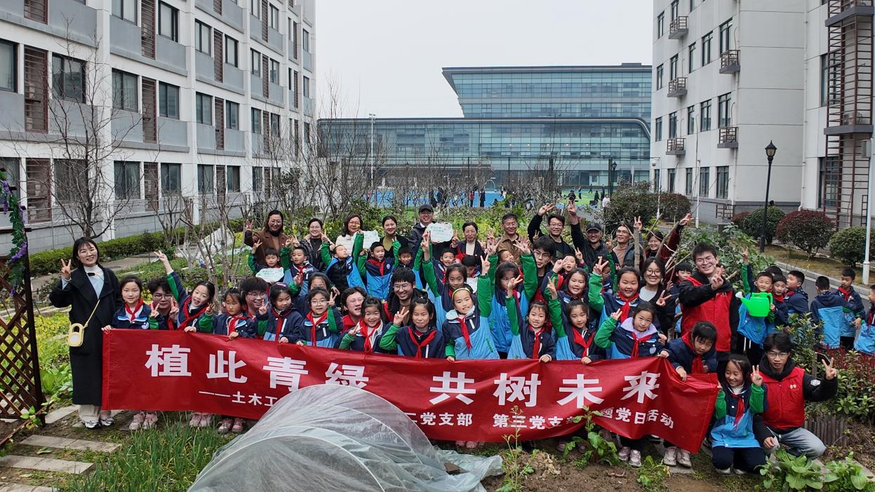 3月12日,在第47个植树节来临之际,江苏城乡建设职业学院土木工程学院党总支第二党支部、第三党支部前往常州市钟楼区昕弘实验学校,开展“植此青绿 共树未来”主题党日活动,与师生们共同携手,为校园增添一抹新绿。