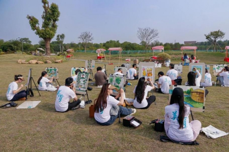 在田园诗画中捕捉自然之美,活动以“奔赴自然”为主线,将南庄村的“花间”“水间”“田野”三大生态区域转化为天然课堂。学生们尝试用不同的绘画技法表现江南水乡的韵味。北欧的极简线条与东方的写意笔法相互碰撞,浓烈的色彩与水墨留白相映成趣。数字媒体专业的秦同学感慨:“坐在草地上作画,泥土和青草的香气扑面而来,终于理解了‘外师造化,中得心源’的含义。”在纸间刀痕中绽放传统美学,活动中,非遗“套色刻纸”技艺吸引了众多目光。教师从扇面构图讲到色彩搭配,将传统纸艺的技法拆解为生动的美学语言。学生们创作的6件刻纸扇面陈列在展台上,牡丹纹样与现代几何图形交织,梅兰竹菊题材被赋予新的表达方式。留学生米萨手持刻有传统纹样的扇面,赞叹道:“中国刻纸就像立体的诗,刀痕里藏着以简驭繁的智慧。”非遗工艺不仅传递了文化精髓,也成为跨越语言的艺术桥梁。在细节坚守中传递生态理念,在创作过程中,学生们始终秉持环保理念,活动结束后,画具归位、场地整洁,画中的风景与现实中的自然相得益彰,这种自觉的环保意识,让艺术创作与生态保护并行不悖。在艺术对话中构筑共通语境,教师团队在指导中融入跨文化视角,既讲解宋代绘画的“以形写神”,又对比印象派的光影表现;既示范传统刻纸的“阴阳刻”技法,又引入现代构成原理。这种融合式的教学方法,让美育课堂成为多元文化对话的平台。