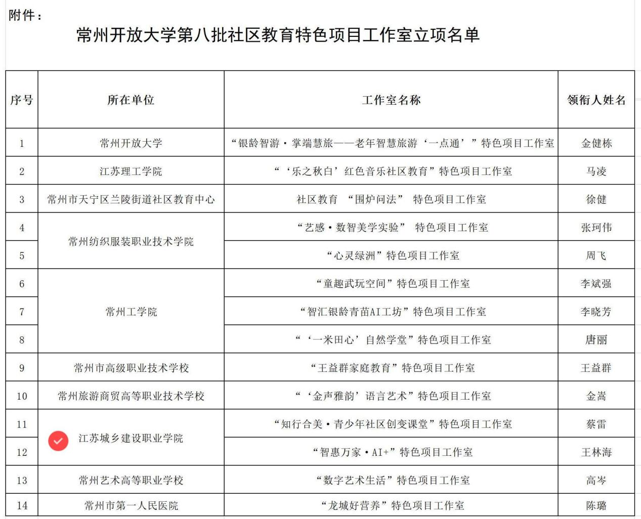 近日,常州市第八批社区教育特色项目工作室评审结果发布,我校2个项目入选。他们分别是“知行合美·青少年社区创变课堂”特色项目工作室(领衔人:土木工程学院蔡雷)、“智惠万家·AI+”特色项目工作室(领衔人:基础部王林海)。特色项目工作室建设周期为3年,各工作室领衔人后期将严格按照建设方案、建设考核评估细则的要求积极开展工作室建设,尤其要注重课程开发、送教社区宣传报道、微视频制作等方面工作。本次入选的两个项目充分结合了社会与时代发展需求,深入社区一线推动与人民群众的零距离课堂,从教育供给侧推动学习型社区、学习型社会建设。