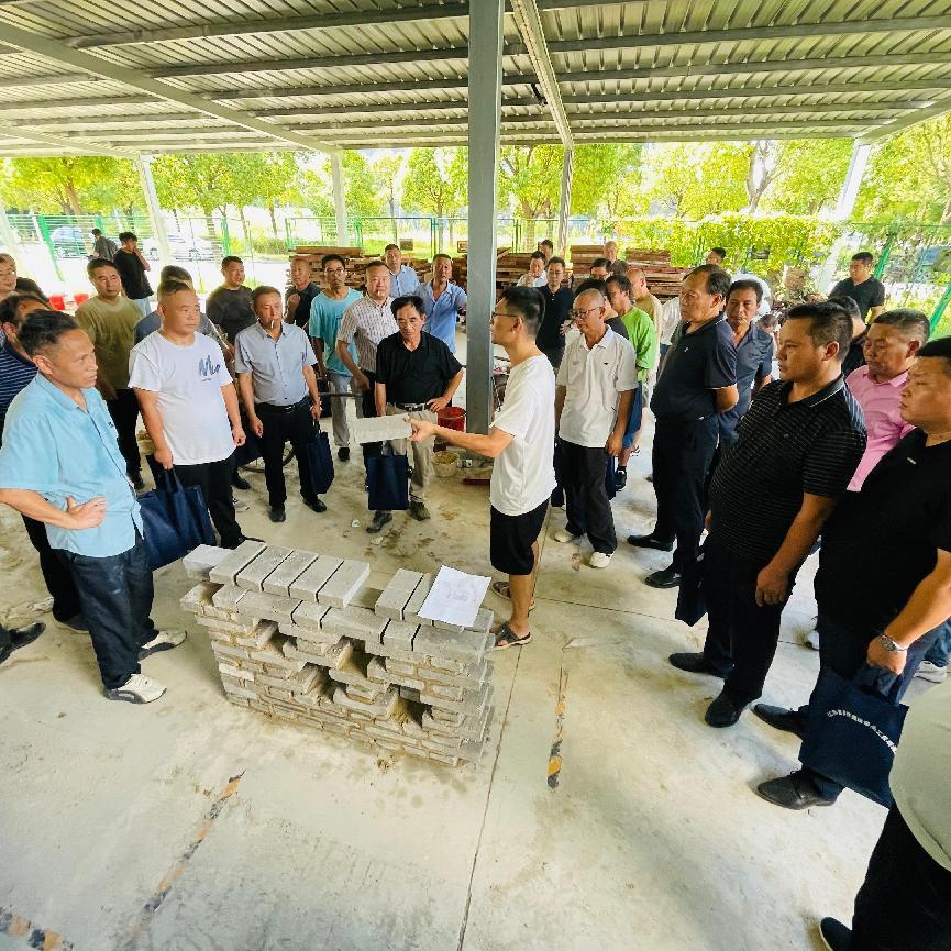 培训班上,江苏省乡村规划建设研究会副秘书长张奇云强调了培训班纪律和要求,期望各位学员真正做到学懂、会用,把新技术、新规范带回到乡村建设实践中,带动身边人一起进步,不负“带头工匠”这一光荣称号。培训中,江苏城建校建筑规划设计院高级规划师、副教授冷红卫以《农房建设基础知识》开篇,围绕地基处理、结构安全、抗震设防等要点,用大量真实案例敲响质量警钟;我校土木工程学院文畅老师解读了新版《江苏省农房设计图集》要求,并宣讲了相关政策法规、契约精神以及工匠“传帮带”的社会责任,为“带头工匠”画像立标;我校继续教育学院副院长董建军将“小班组+大带班”现场管理模式搬进课堂,讲授《施工技术与项目管理》内容。本次培训特别设置“晚间工匠沙龙”环节,溧阳市“最美乡村工匠”周志清总工面对面分享建设经验和成功案例。在实操环节,技能实操教师们精心安排“钢筋绑扎、墙体砌筑、绿色建材识别”等操作工位,讲练结合,既分解演示了操作流程节点,同时还进行了安全事项教育等,学员轮流上手、即学即练。