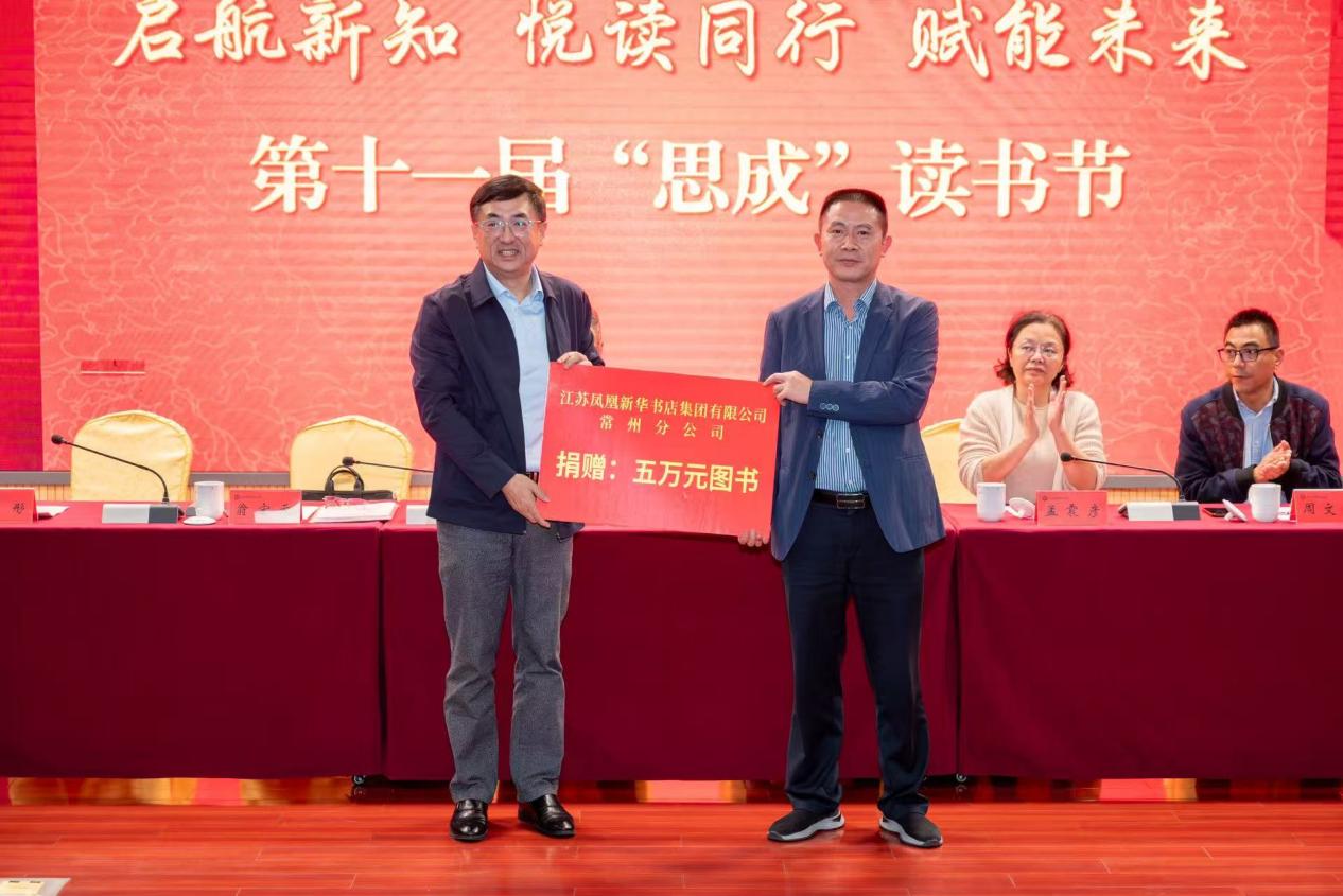 开幕式上,苑彤介绍了本届读书节的活动安排。读书节将于10月中旬至11月底集中开展,涵盖党的二十届四中全会学习专题活动、主题荐书、新生入馆教育、读书笔记、读书分享会、校园书店主题书展、文献检索大赛、数字资源推广与培训、科研诚信讲座、名家进校园专题讲座等二十余项活动。鼓励全体同学:一要勤于读书,养成终身学习的良好习惯;二要读好书,在书香中体悟生活真谛;三要学以致用,砥砺成才。他鼓励同学们积极投身读书节各项活动,勤思善行,知行合一,以阅读照亮人生前路,努力成长为有益于社会的栋梁之才。章志红宣读了优秀读者表彰名单,与会领导为获奖学生颁奖,获奖学生代表作了发言。翁宏元介绍了新华书店与我校合作推进读书育人的相关举措。他表示,常州新华书店将持续开展新书推荐、阅读分享、作家讲座等文化活动,助力学生养成“爱读书、读好书、善读书”的良好风尚,为我校书香校园建设注入更多优质资源与服务支持。