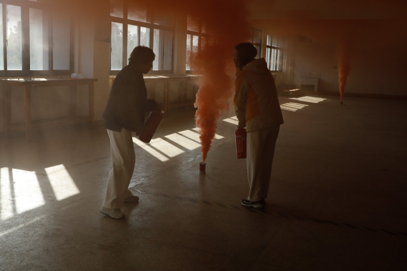 演练活动在11号营造楼及12号雕龙楼实训工厂区域有序开展。保卫处汤佳勇老师为大家详细介绍了本次演练的流程、注意事项与培训意义。培训人员在营造楼进行了消防应急疏散演练,从模拟火情发生、初期扑救到有序疏散、人员清点,全过程紧张高效,秩序井然。全体人员系统学习了灭火器与消防水带的正确使用方法,并分组进行了灭火实操演练。整个过程中,各培训人员反应迅速、操作规范、配合默契,展现了良好的安全素养和团队协作精神。