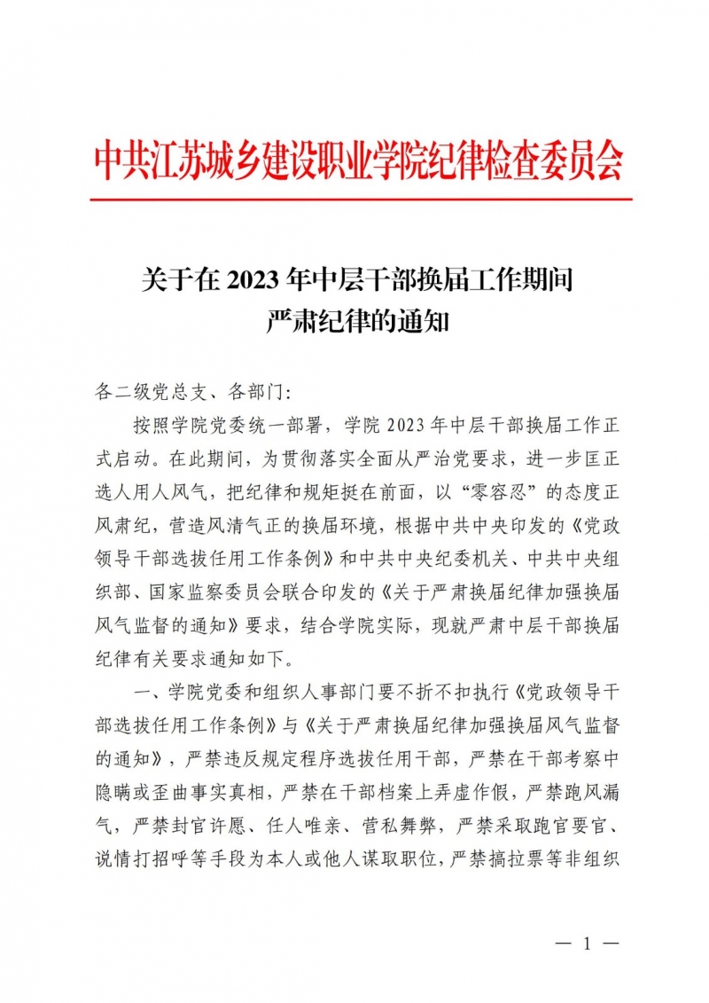 关于在2023年中层干部换届工作期间严肃纪律的通知